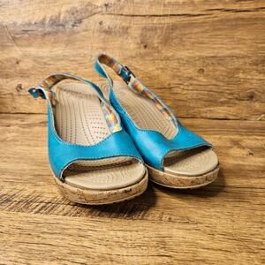 Crocs Women's A-Leigh Blue cork Wedge open toe slingback sandal shoe sz 9
