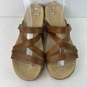 Crocs Women's A-leigh Sandal Size 9 Crisscross Wedge Slide Brown AS IS