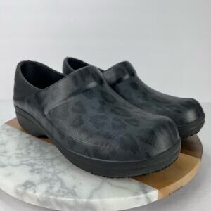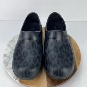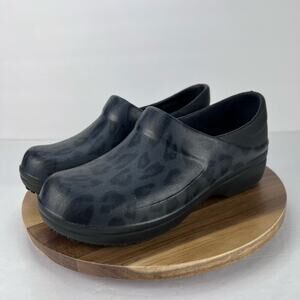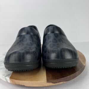 Crocs Women's Black/ Leopard Neria Pro II Graphic Clogs Slip Resistant 7