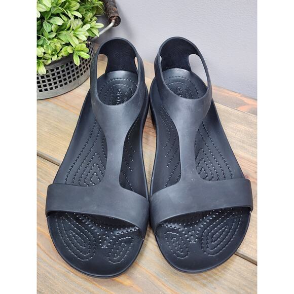 Crocs Women's Black T-Strap Comfort Sandals Casual Summer Shoes Size 9