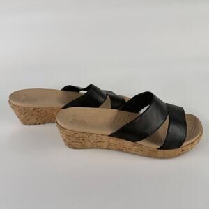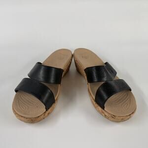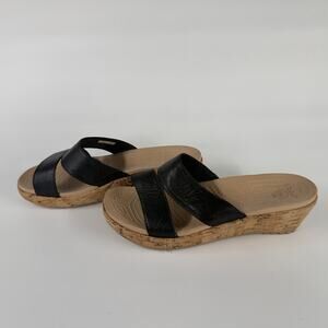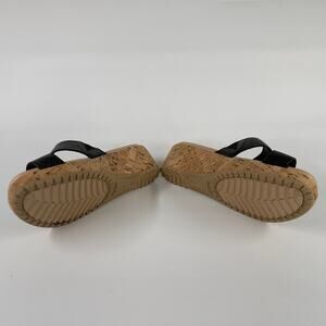 Crocs Women’s Black Wedge Sandals Size 7 Slip-On Cork Platform Comfort