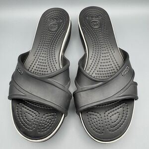 Crocs Womens Cocband Sandal Size 8 Black White Slide Low Wedge Pool Beach Shoe