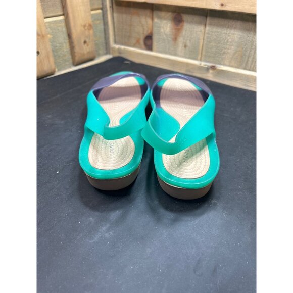 Crocs Womens Color Block Turquoise Blue Slingback Sandals Size 10 Lightweight