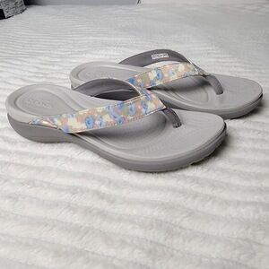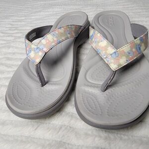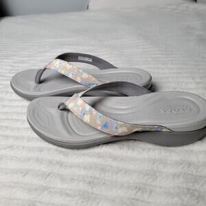 Crocs Women's Dual Comfort Floral Print Flip Flop Sandals Gray Size W7