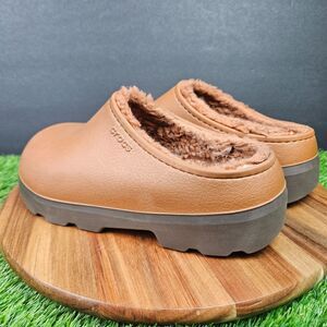 Crocs Womens Dylan Lined Fuzz Clogs Casual Warm Comfort Solid Cognac Size 7