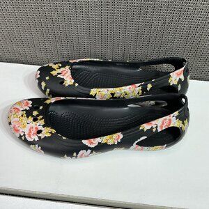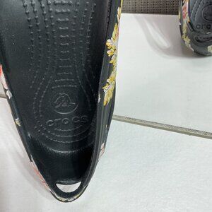 Crocs Womens Floral Black & Multicolor Slip-On Flats Size M8