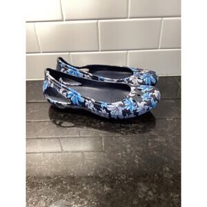 Crocs Women's Floral Print Kadee Slip-On Ballet Flats Shoes Black Blue Size W8
