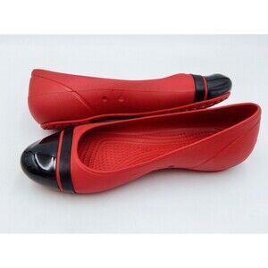 Crocs Women's Gianna Alice Red Ballet Flats Black Cap Toe Shoe Size 8 Slip On