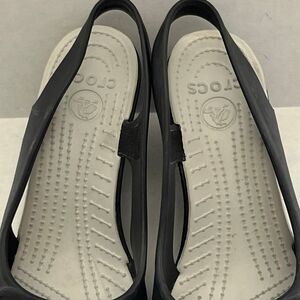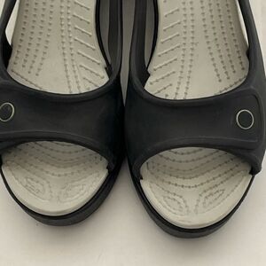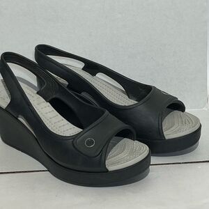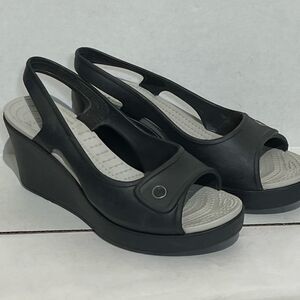 Crocs Women's Havana Black Peep Toe Wedge Heel Slingback Sandals Size 8