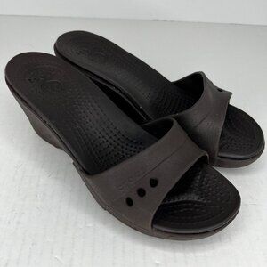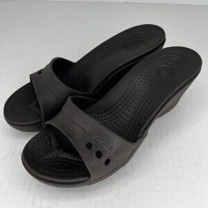 Crocs Womens Kadee Black Solid Wedge Heeled Rubber Slip-On Size 8 Mule Sandals
