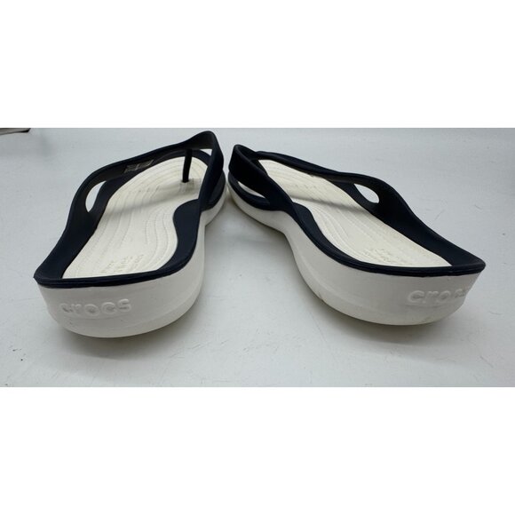 Crocs Womens Kadee II Flip Flop Sandals Size 8W Black White Comfort Summer Beach