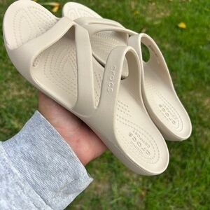 Elegant cream Crocs with iconic comfort. Ideal for everyday wear. Crocs Women's Kadee II Strappy Sandals, Sizes 7 new no tags