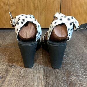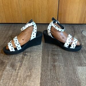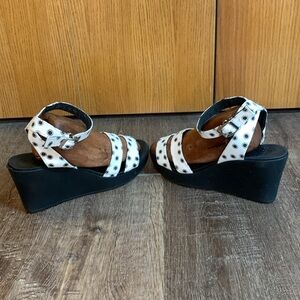 Crocs Women's Leigh Polka Dot Black And White Printed Wedge Heels Women's Size 9
