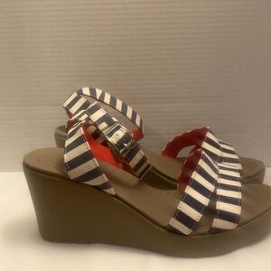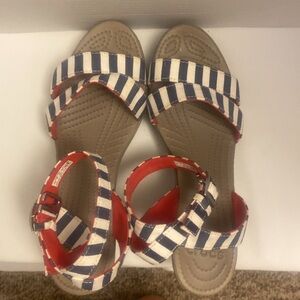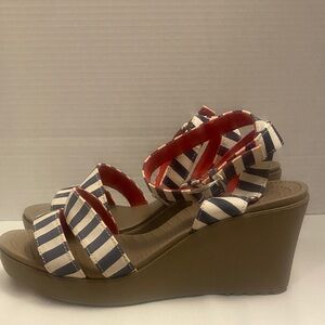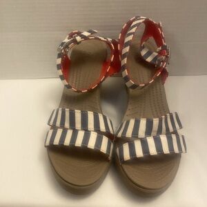 Crocs Womens Leigh Sandal Stripe Wedge Platform Ankle Strap Size 9 NWOT