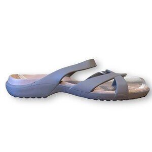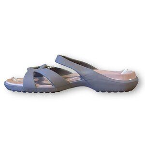 Crocs Womens Maleen Twist Sandal Sz 11 Gray Taupe Slip On Slide Comfort Shoe