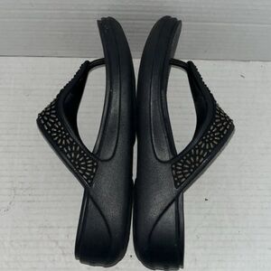 Crocs Women's Monterey Diamante Black Wedge Sandal Comfort Size 6 slip on. Pre—owned excellent condition no tears very clean insole
