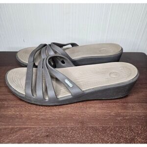 Crocs Women's Patricia II Wedge Sandals Size 11 Slip-on Strappy Dark Brown. Shoes are pre-owned with minor wear present. Minor wear along the edges and soles. Minor mark on the heel as pictured. No tears present. See pictures for details. Any questions please let me know.
