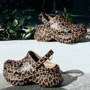 Crocs Women's Platform Bae Animal Clog in Sepia / Leopard Print Size 10