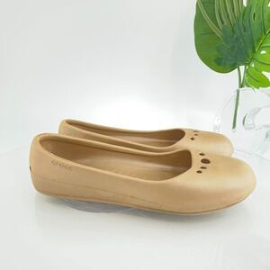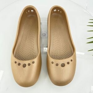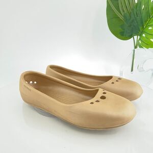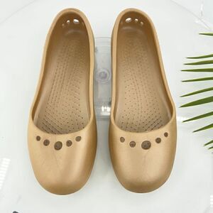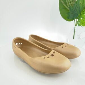 Crocs Women's Prima Flats Size 9 Slip On Gold Rubber Slingback Comfy Beach Pool