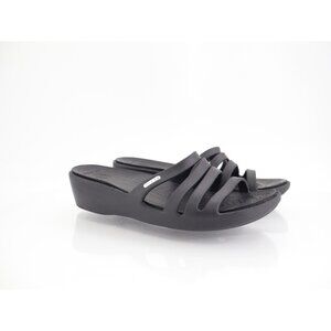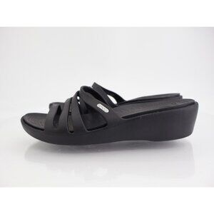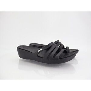 Crocs Women's Rhonda Sandal Size 11 Wedge Slide Flip Flop Black Rubber Beach