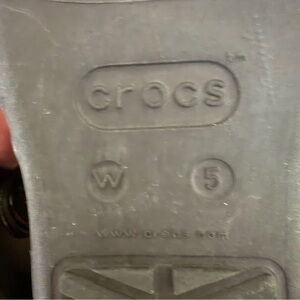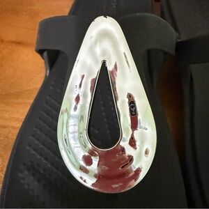 Crocs Women's Sanrah Liquid Silver Teardrop Black Flip Flop sandal size 5 shoe