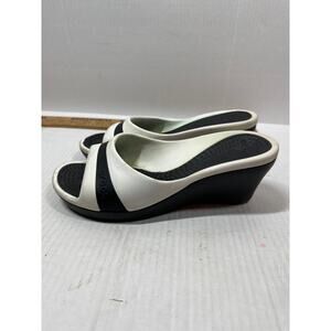 Crocs Womens Sassari Comfort Slip On Slide White Black Wedge Sandals Size 9
