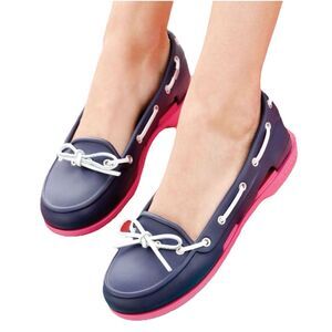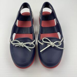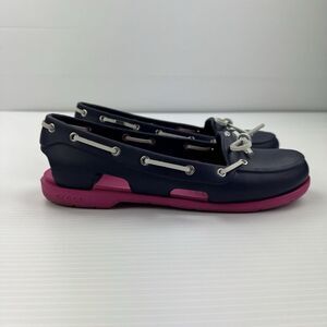 Crocs Women’s Size 10 Beach Line Boat Shoes Navy Pink Loafers Slip On