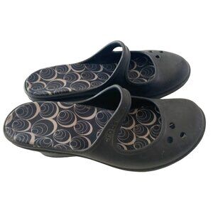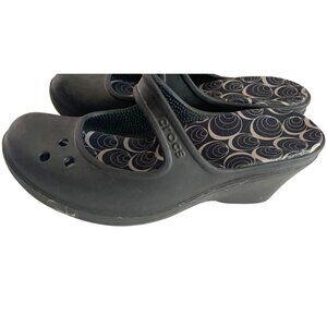 Crocs Womens Size 10 Wedge 3 in Heel Black SLip On Slide Cog Sandal Shoes Mary J