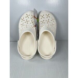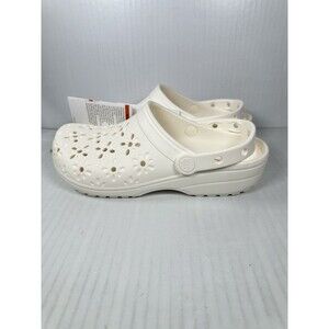 Crocs Womens Size 10 White Classics Floral Cut Out Clog Shoes Slip In NEW.