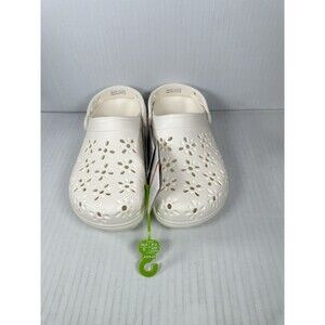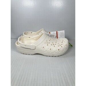 Crocs Womens Size 10 White Classics Floral Cut Out Clog Shoes Slip In NEW