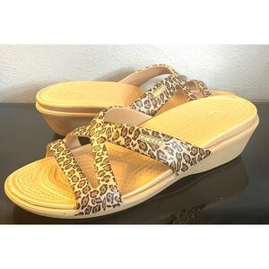 Crocs Women's Size 10Patricia Wedge Cheetah Sandals Slip-on Comfort Slip On