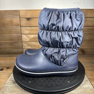 Crocs Women’s Size 6 Winter Puff Boot Blue Pull On Puffy Nylon Lightweight