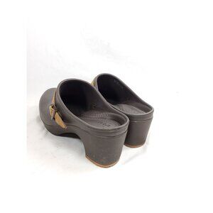 Crocs Womens Size 8 Brown Rubber & Suede Heeled Clogs With Adjustable Strap