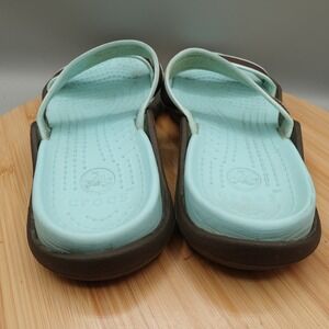 Crocs Women's Size 9 Turquoise & Brown 2 Strap Sandals Slip On Flat Flaws