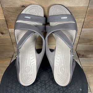 Crocs Womens Size 10 Cyprus IV Espresso Brown Strappy High Heels Slip On Sandal