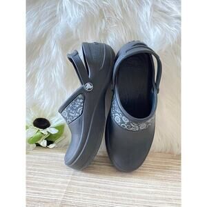 Crocs Womens Sling Backs Ankle Strap Flower Pattern US 6 Summer Sandal Clogs