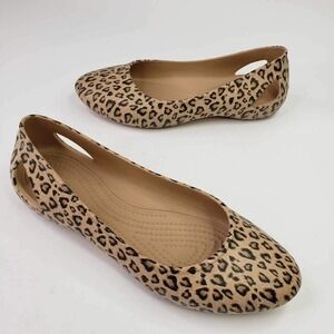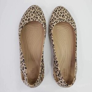 Crocs Women's Tan Brown Slip On Leopard Animal Print Kadee Ballet Flats Size 7