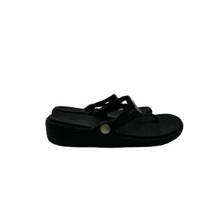 Crocs Women's size 10 Sanrah Metallic o-ring Wedge Flip black &silver