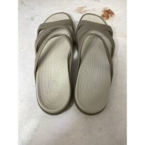 Crocs Womens tan brown Rubber Sandals Slip On Wedge Slides Shoes Sz 10