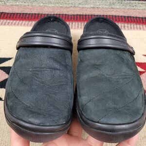 Crocs Wrapped Black Suede Slip On clogs Mule Shoes Comfort Warm, rubber soles, style 10971.