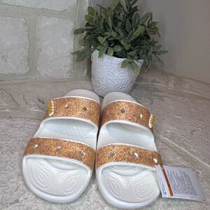 Crocs classicrocs orange glitter Two strap slides sz 10
