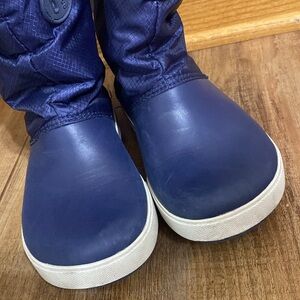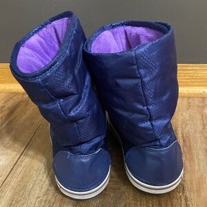 Crocs crocband navy blue and purple pull on mid calf winter snow boots size 6