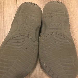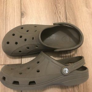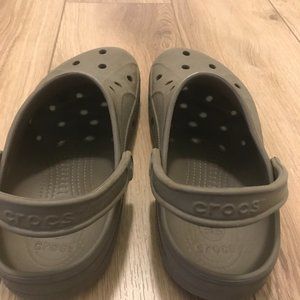 Croc dark gray clogs in great used shape. Show some minor wear but no major scuffs or damage. These are women's size 12 and/or men's size 10.