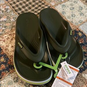 Crocs army, green and white flip-flops brand new with tags men’s size 7 women’s size 9