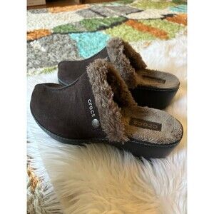 Excellent condition Faux fur lined brown Crocs. Slip on clogs. Size 10