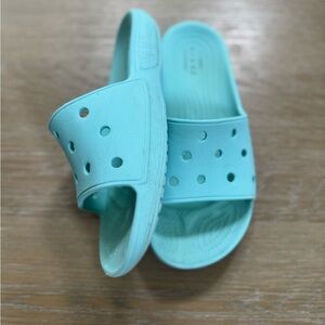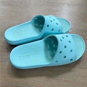 Crocs iconic comfort women’s aqua teal color rubber slides sandals shoes size 9
