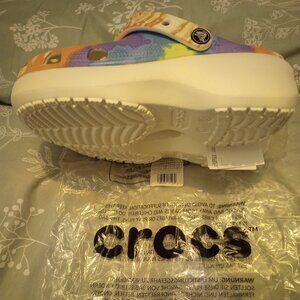 Crocs original rainbow tie dyed classic platform shoes, Brand New size 8