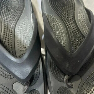 Crocs slip on flips flops / sandals size 6 women’s 2 pairs black and pink