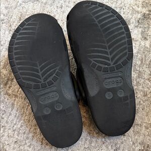 Comfortable and durable Crocs in classic black. Perfect for everyday wear. These are in pre-loved, used condition. Bottoms are more worn. Tops and insoles show a lot less wear. Perfect for play!