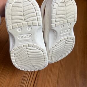 white with several jibbitz, stitch and sponge bob, slip on, clog